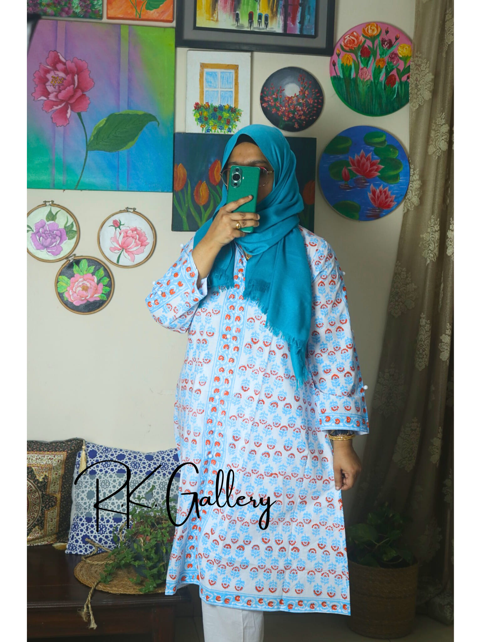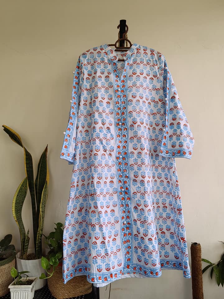 Gracefully flowing and effortlessly chic โ our Long Handblock Printed Cotton Kurtas are designed for comfort without compromising on style. Each piece is handblock printed on soft, breathable cotton, paired with a classic white cotton pant to complete the look. From casual errands to festive gatherings, this set is your go-to for an elegant, grounded presence.