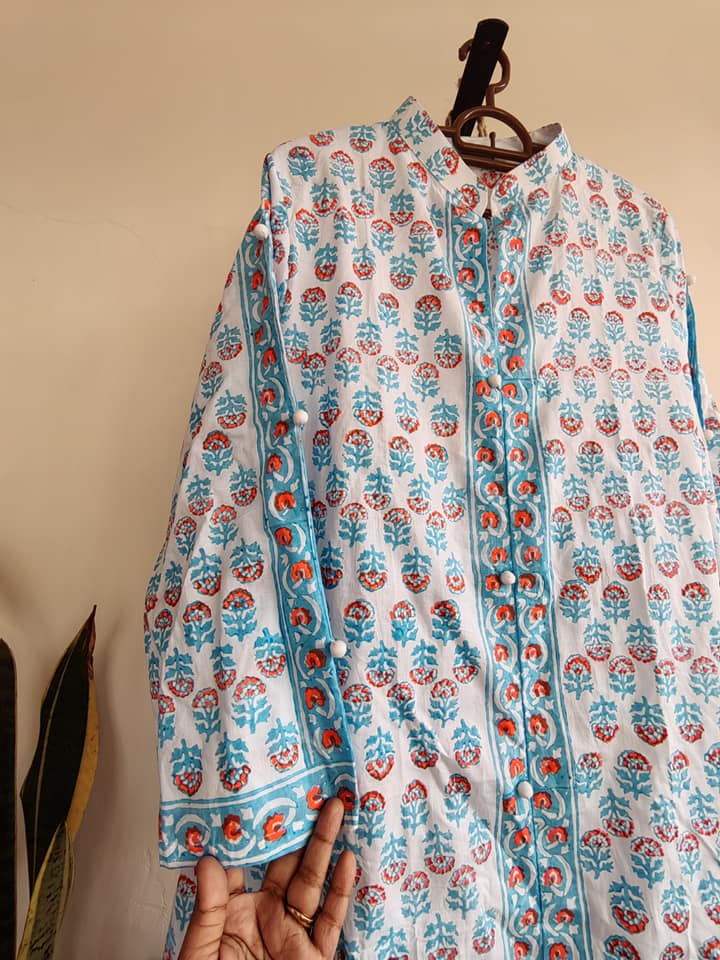 โจ Includes long handblock printed kurta + basic white cotton pant