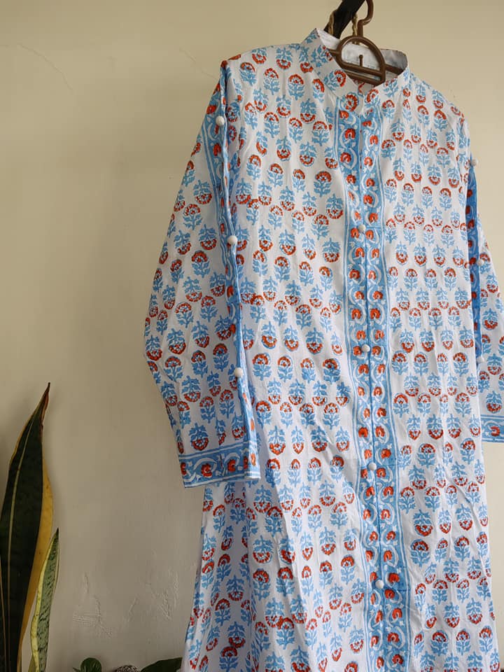 ๐ฟ Long Handblock Printed Cotton Kurtas (with White Pant)