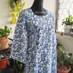 Long Handblock Printed Cotton Kurtas (with White Pant)